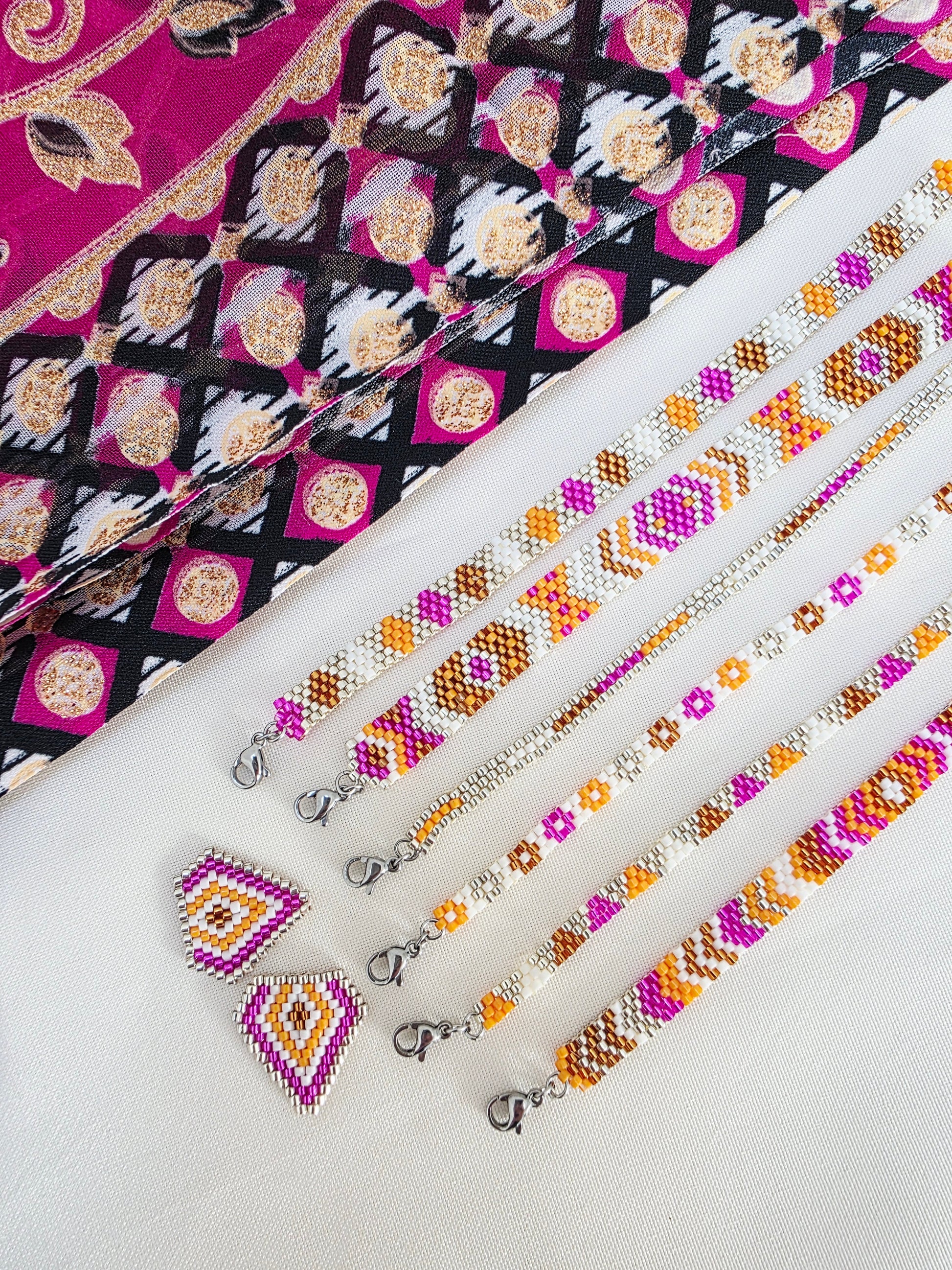 Des nuances franches, un éclat argenté, et toujours ce tissage fin et précis qui signe l’univers Terre à Perles.