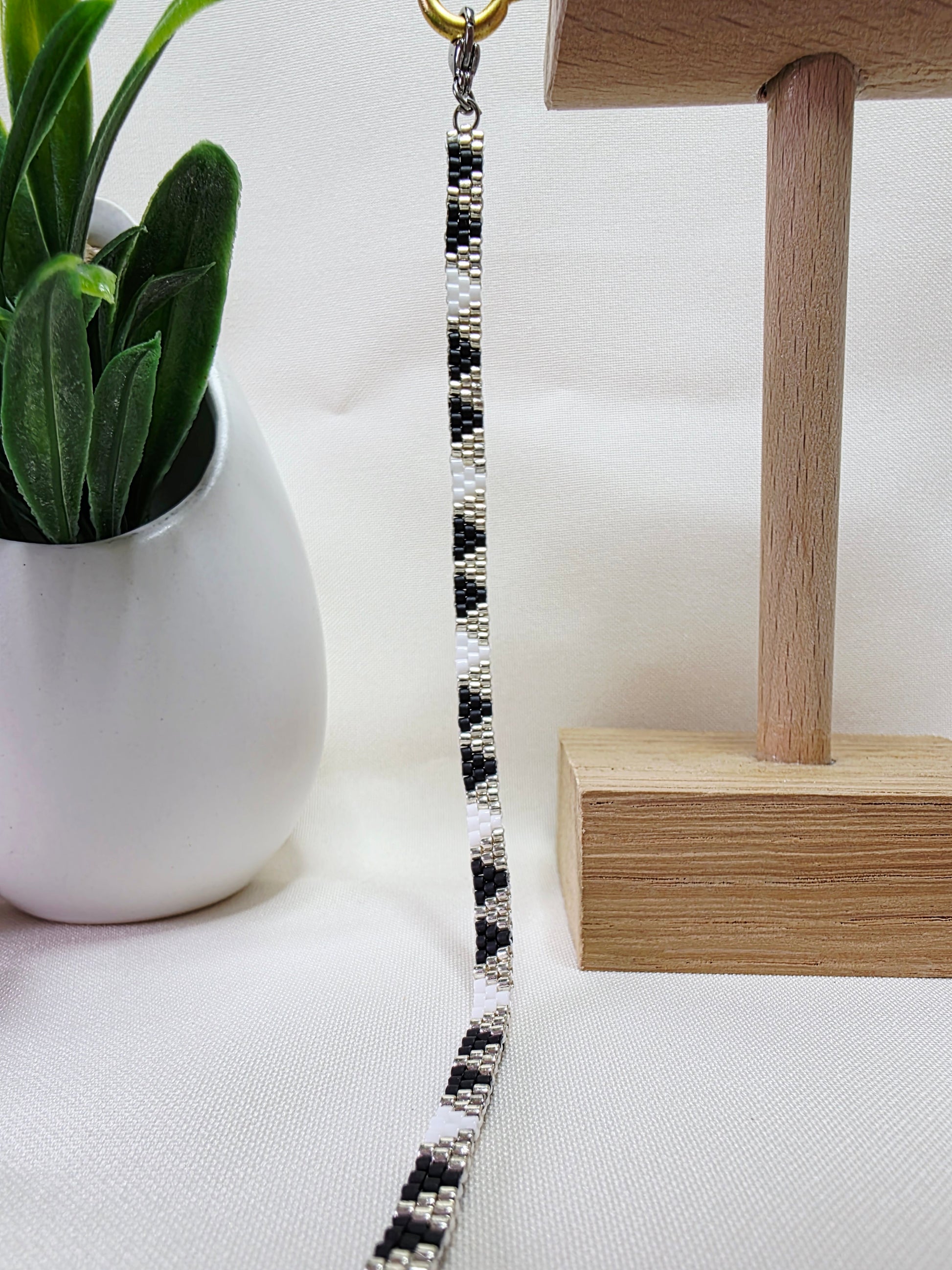 Réalisé selon la technique du brick stitch, chaque bracelet demande concentration et travail minutieux. Les perles de verre Miyuki Delica sont choisies pour leur éclat et leur régularité, assurant un rendu aussi harmonieux qu'élégant.