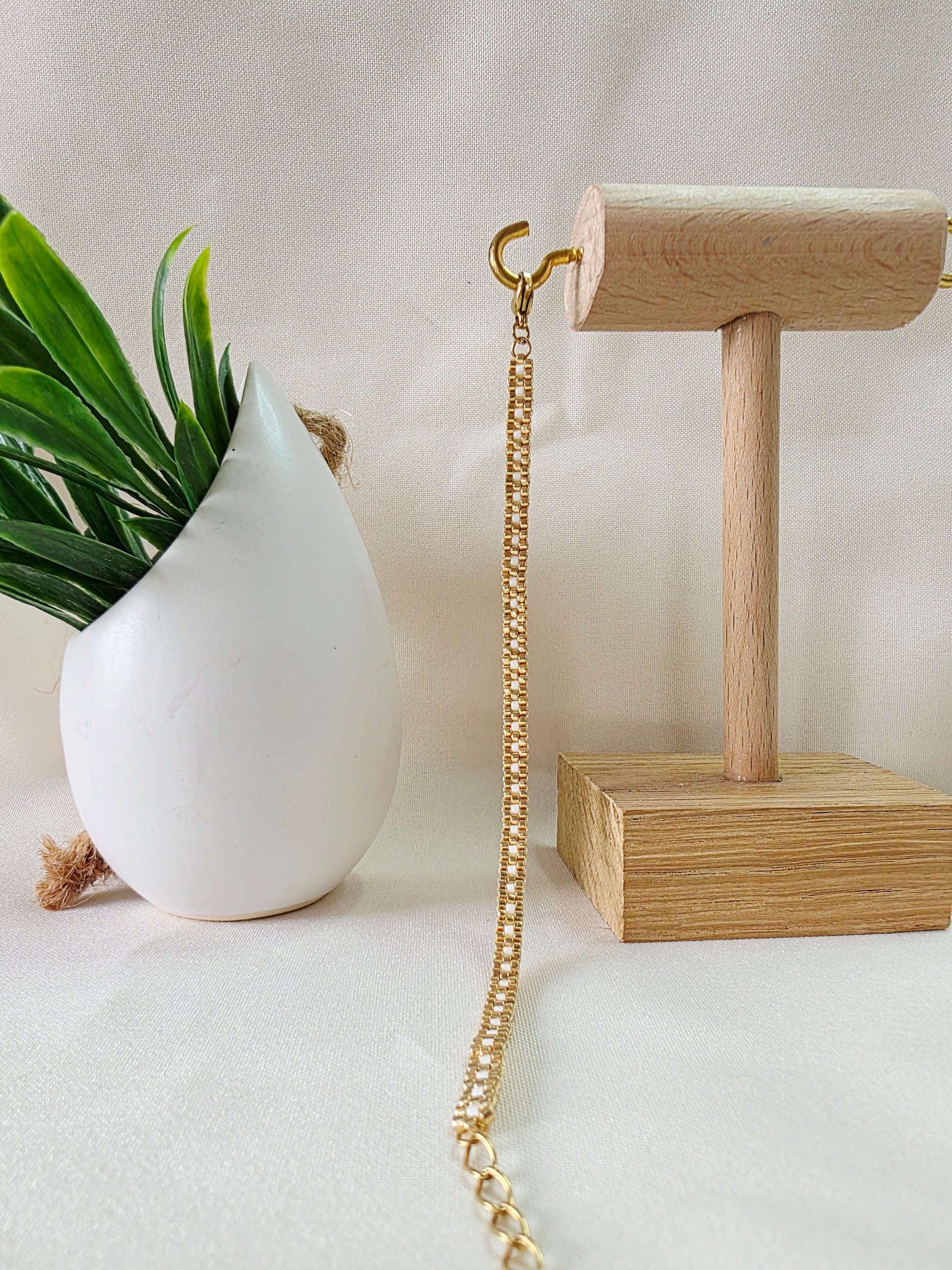 Fermoir mousqueton et chaînette réglable en acier inoxydable doré, choisis pour leur brillance et leur résistance. Un bijou fin, conçu pour durer et s’adapter à tous les poignets.